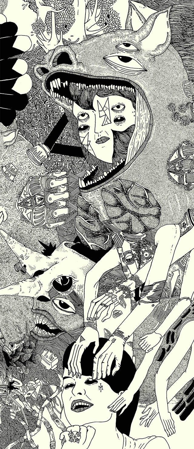 The two have a unique style of working in tandem on artworks such as the piece above which took three months of 8-10 hour days to complete and measures 1 x 0.7 meters (a little over 3 feet wide). To see how they work together you can watch this video and see a gallery of their work here.