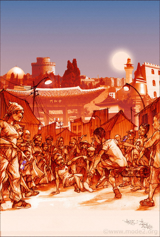 Mode 2 was born in Mauritius in 1967 and moved to London in 1976, where he did most of his schooling. He has been drawing for as far back as he can remember and spent his youth deep into comics, sci-fi and fantasy literature, as well as role-playing games such as “Dungeons & Dragons”.